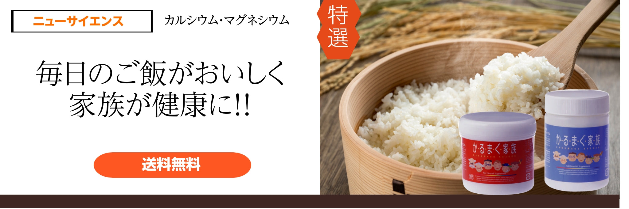 カルシウムはマグネシウムと一緒にとってはじめてお互いの能力を発揮します。 ご飯と一緒に炊ける「かるまぐ家族」は、 L型乳酸発酵カルシウム と溶解度の高いマグネシウムが、Ca:Mg=2:1のベストバランスで含まれています。