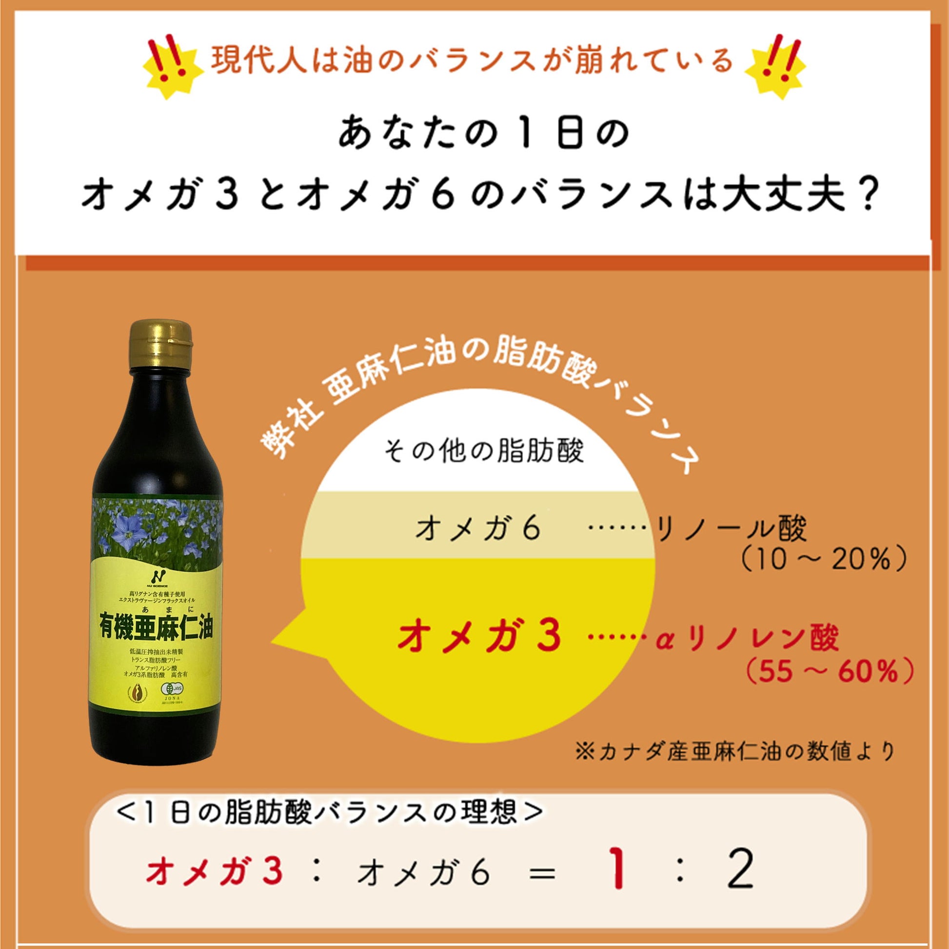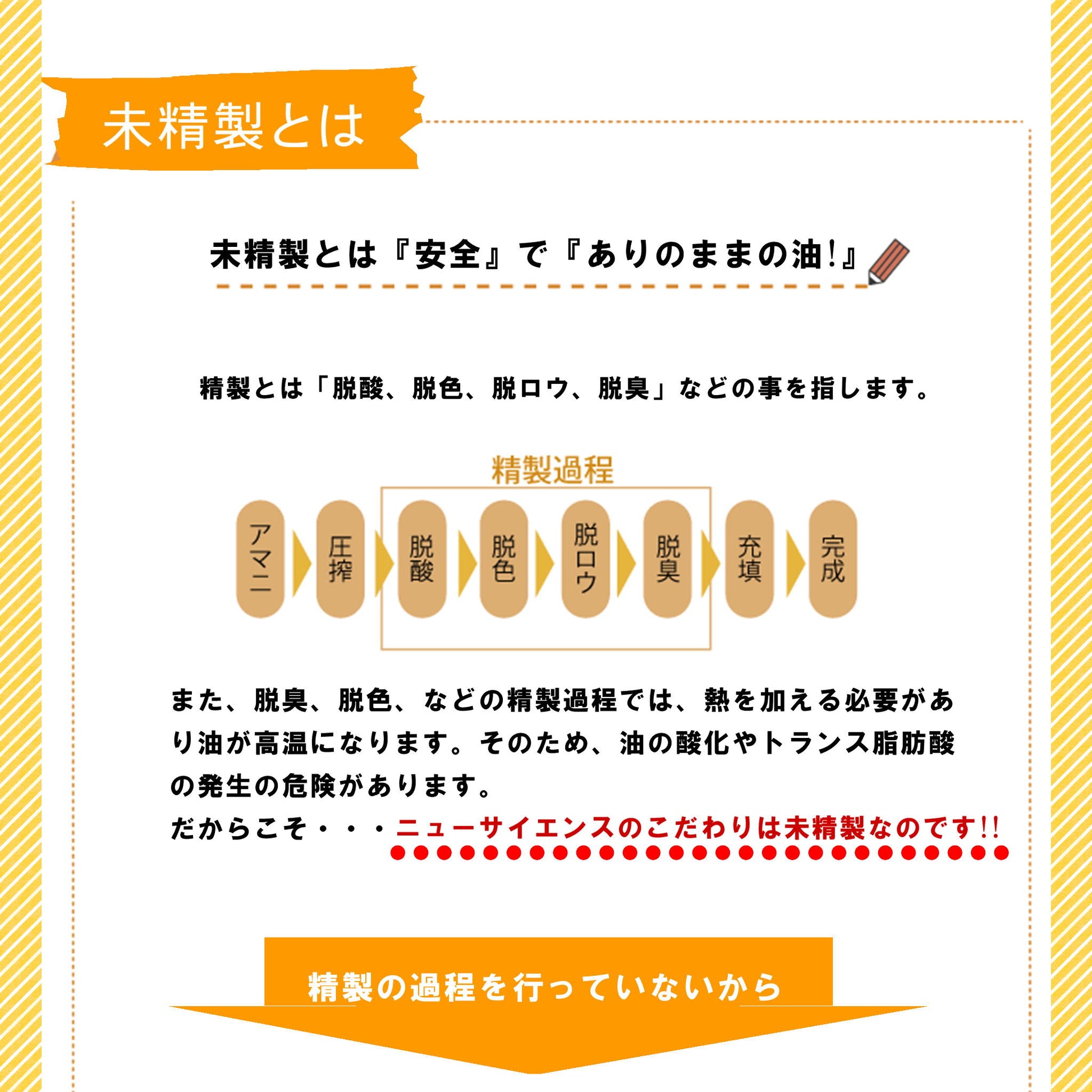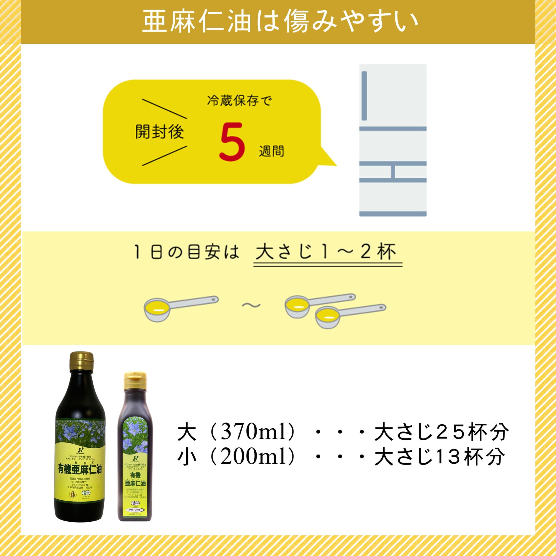 内容成分 | 15ml/14gあたり:飽和脂肪酸:1g トランス脂肪酸:0g コレステロール:0g αリノレン酸(オメガ3脂肪酸):7.7~8.4g |