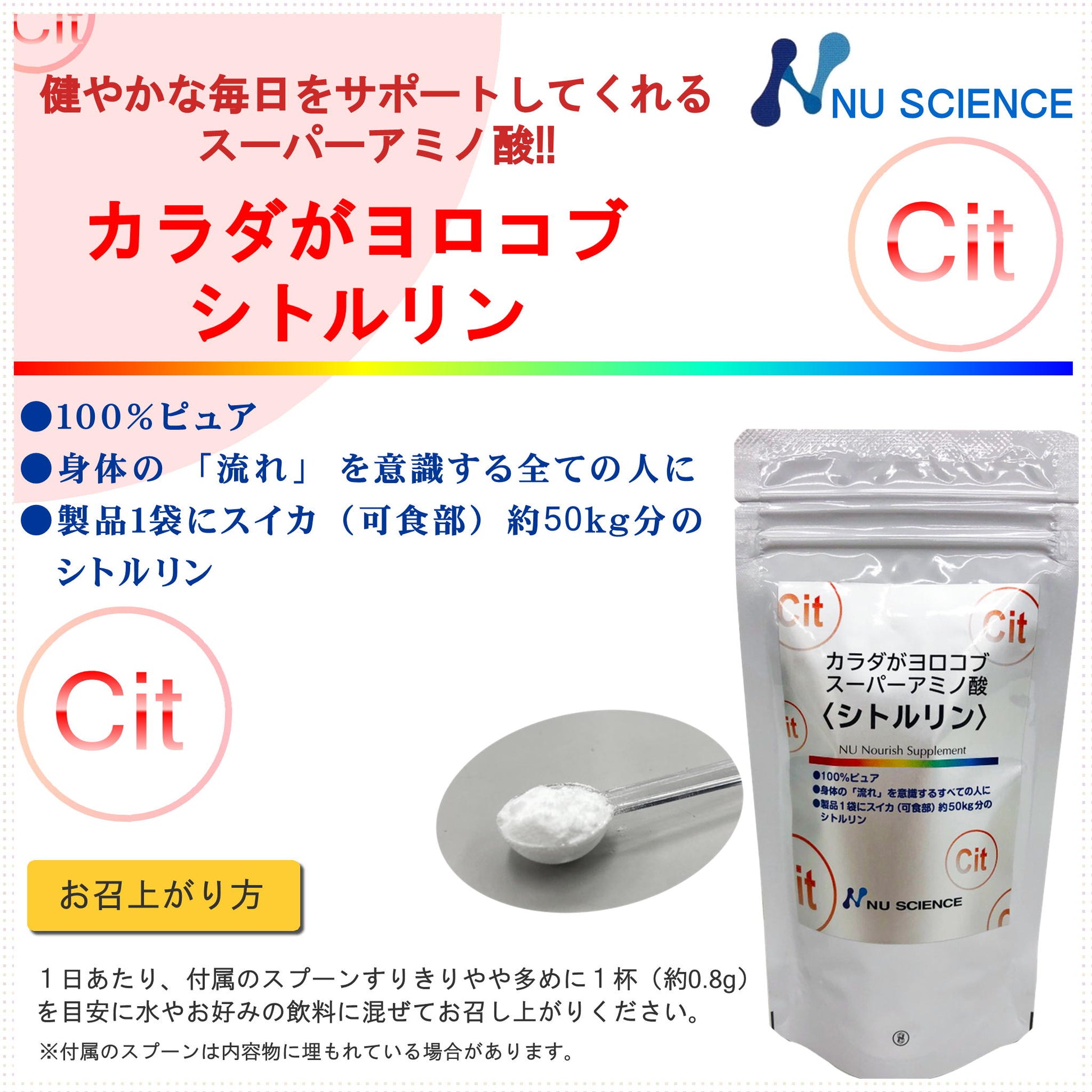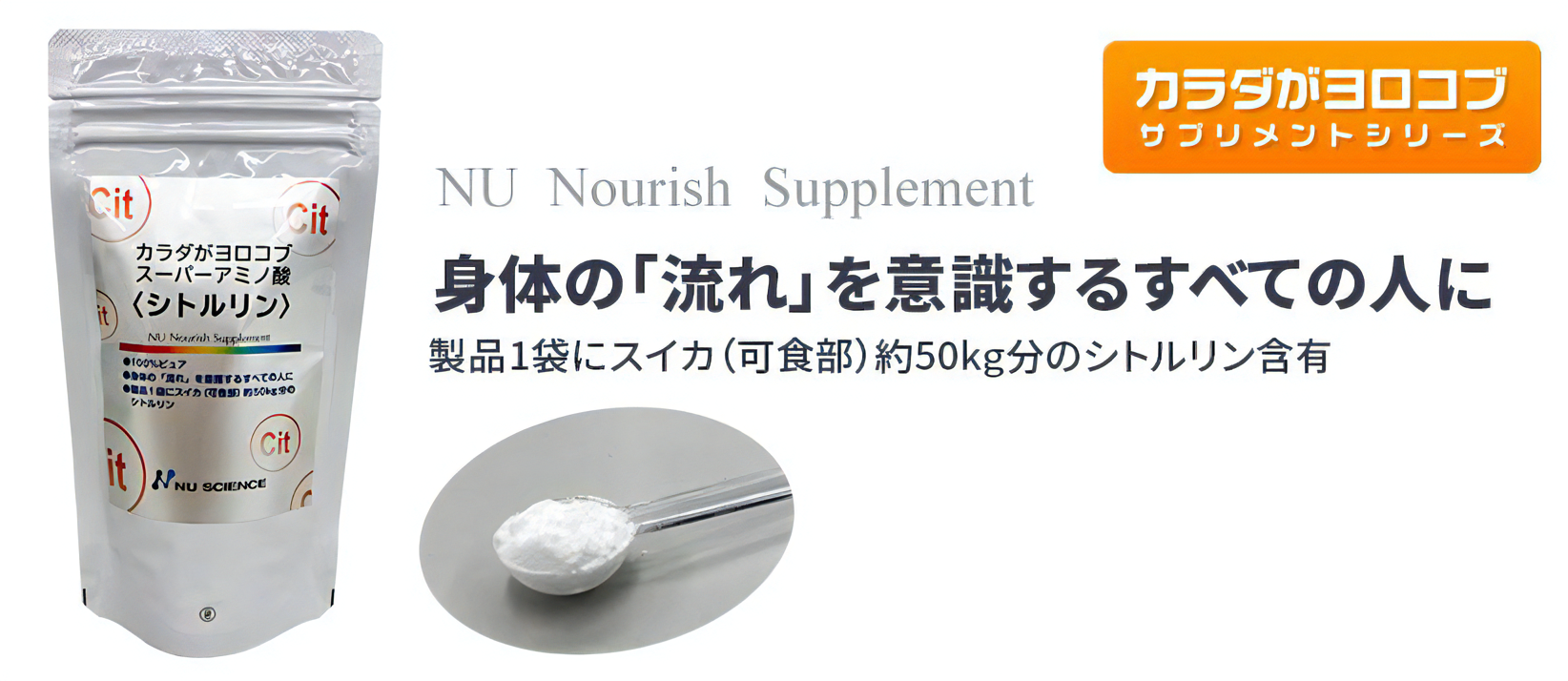 身体の「流れ」を意識するすべての人に 製品1袋にスイカ(可食部)約50kg分のシトルリン含有