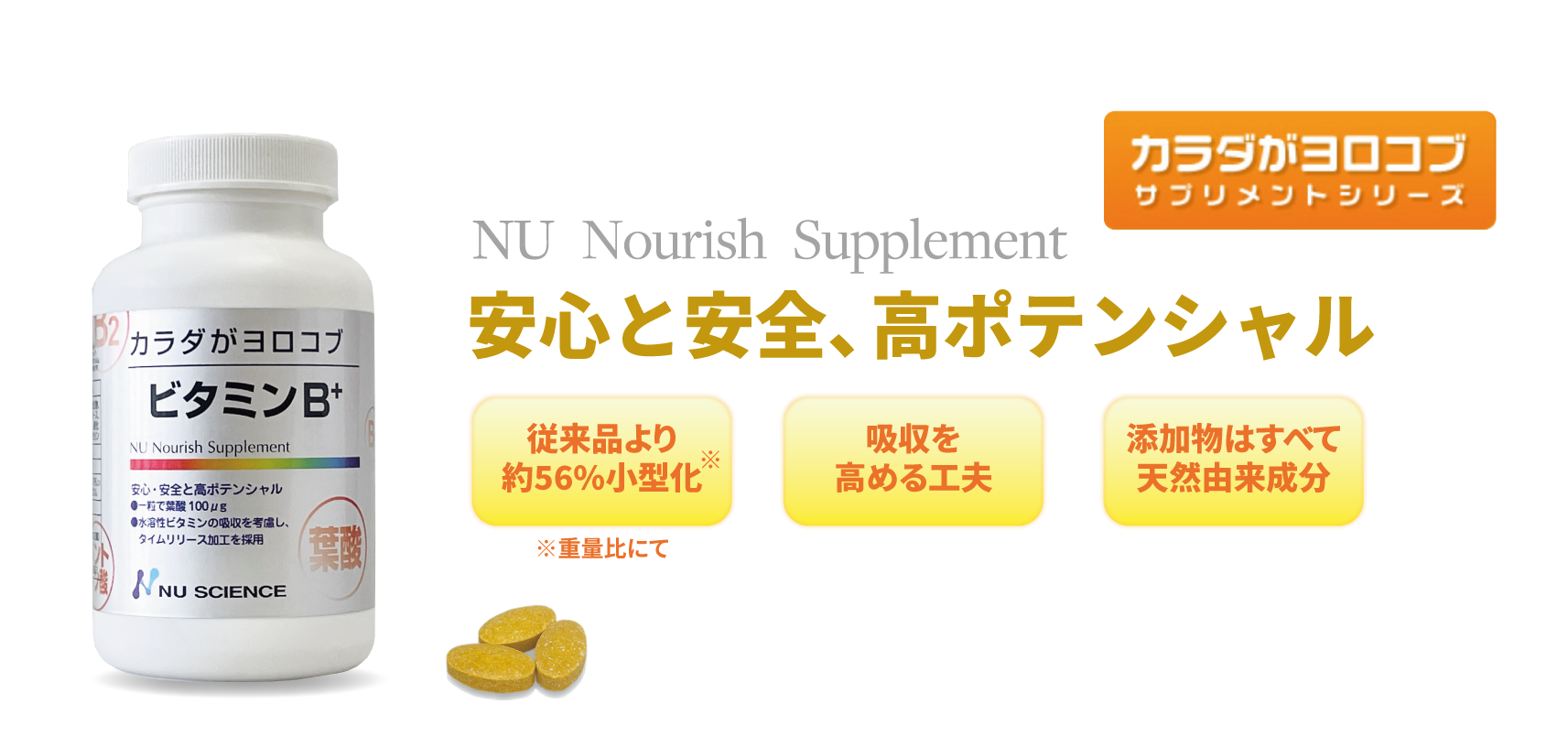 従来品から引き続き【タイムリリース加工】を採用し、吸収効率を高めています。タイムリリース加工とはサプリメントが体に入った後、徐々に溶けるようにする加工で、体内に溜める事ができない水溶性ビタミンを徐々に吸収することで体内濃度を高く維持する加工です。