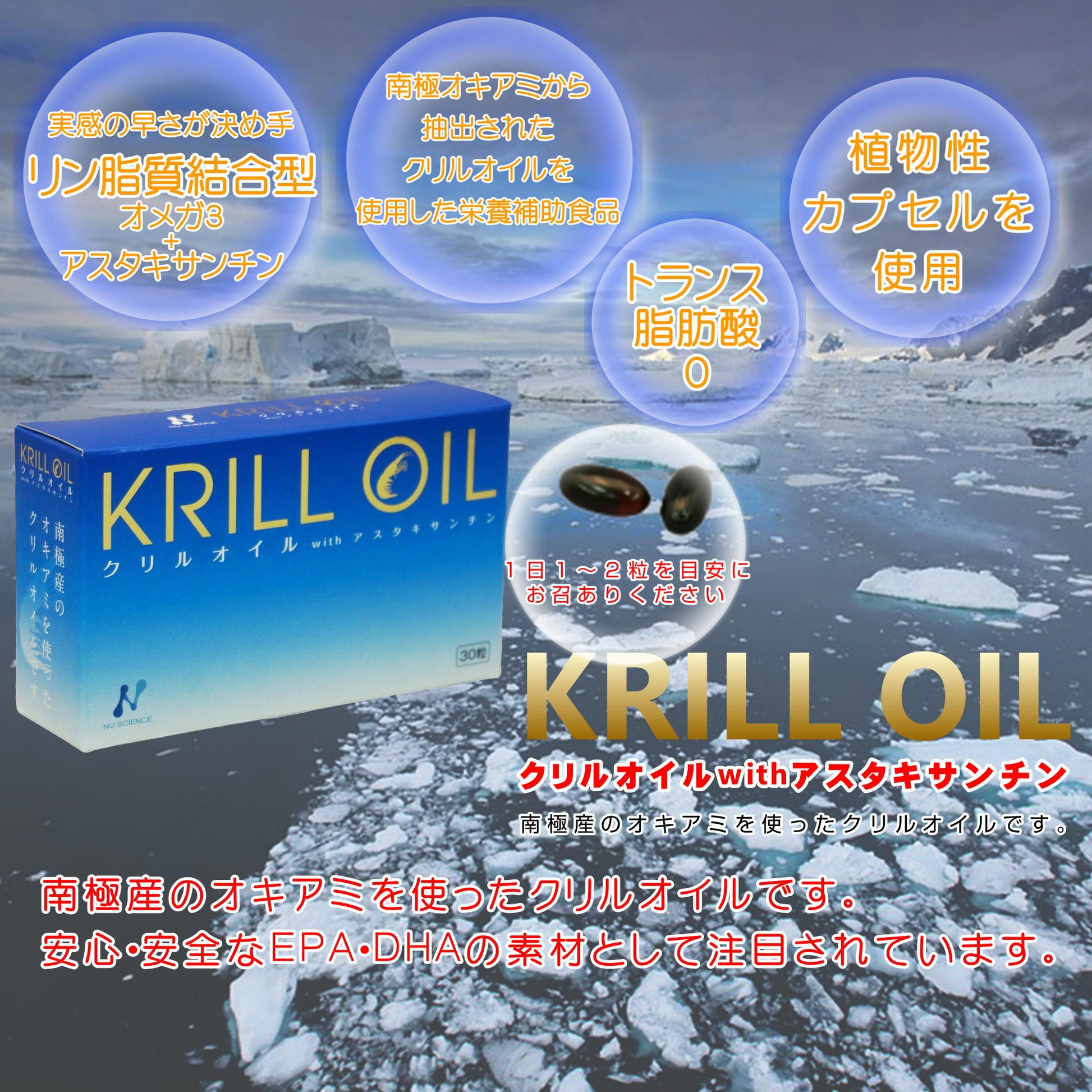 南極産のオキアミを使ったクリルオイルです。安心・安全なEPA・DHAの素材として注目されています。
