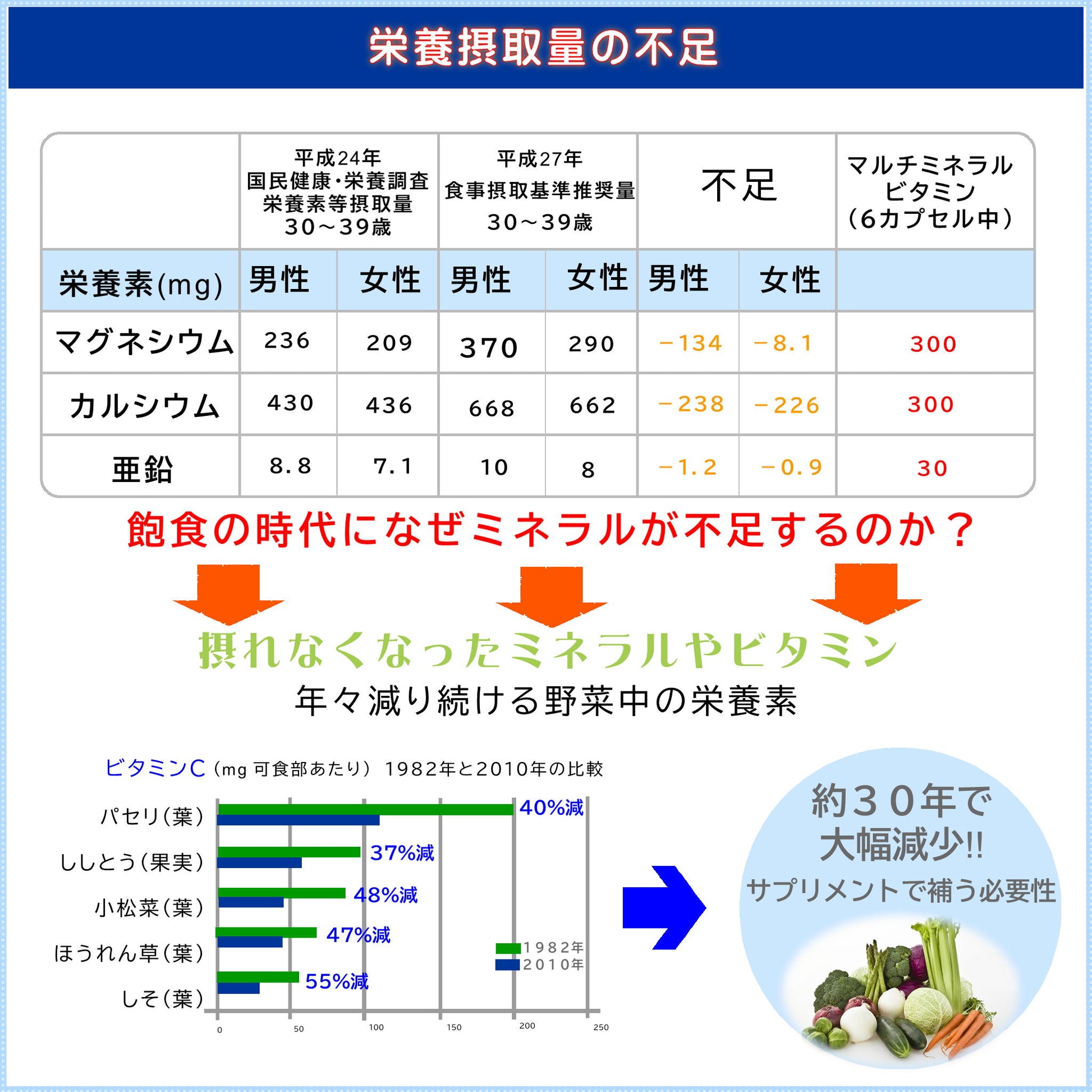 「生命の鎖理論」に基づき、さらに日本人の特性を考慮し「カルシウム:マグネシウム」は1:1・「亜鉛:銅」は約8:1