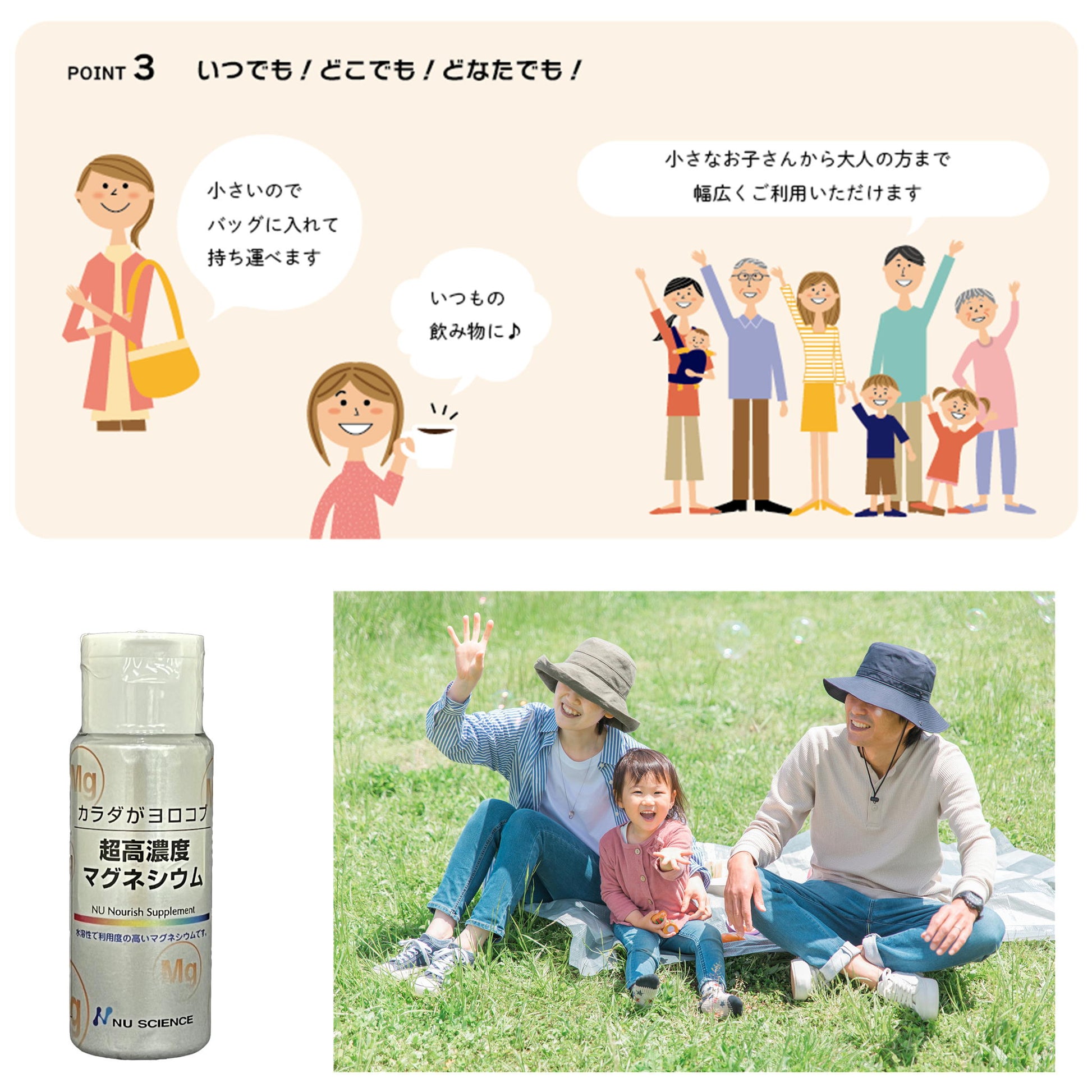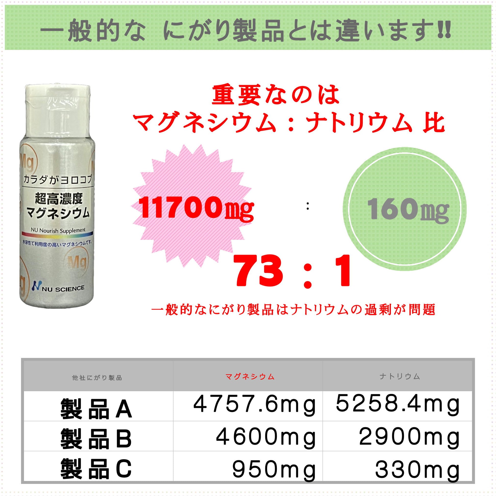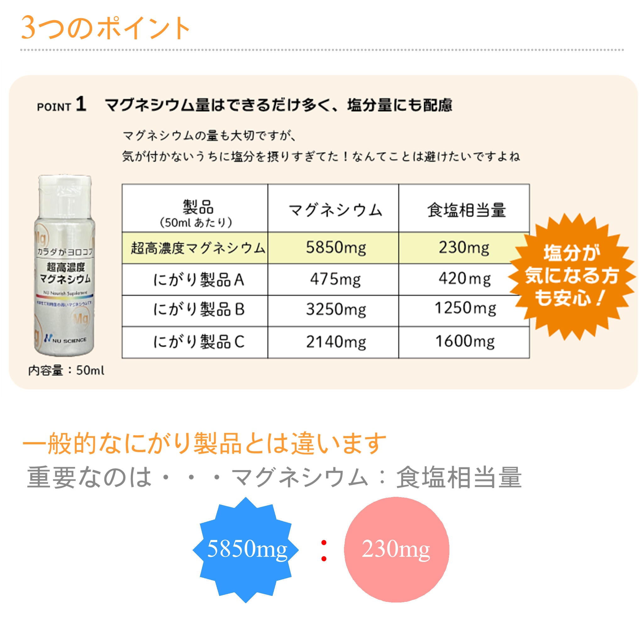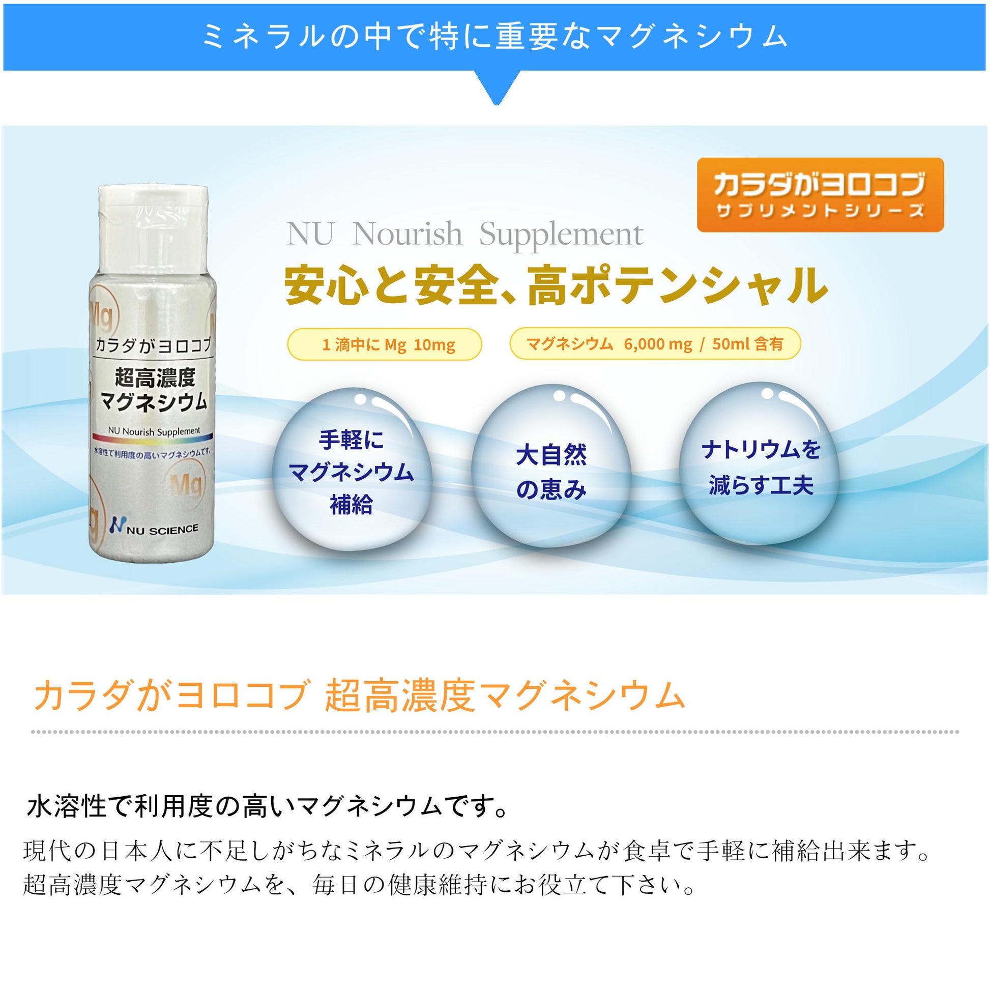 超高濃度マグネシウムは大自然が作り出す天然ミネラル、マグネシウムを使用しております。不足しがちなマグネシウムを安全に、いちばん吸収されやすい塩化マグネシウムの形で食卓へお届けします。
